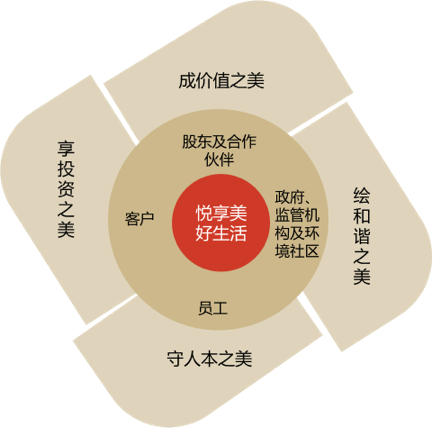 以“悦享美好生活”为理念,东方证券致力于通过提供优质综合金融服务,成价值之美,享投资之美,守人本之美,绘和谐之美,为股东、客户、员工、政府及监管机构、合作伙伴、环境社区利益相关方创造可持续的综合价值。